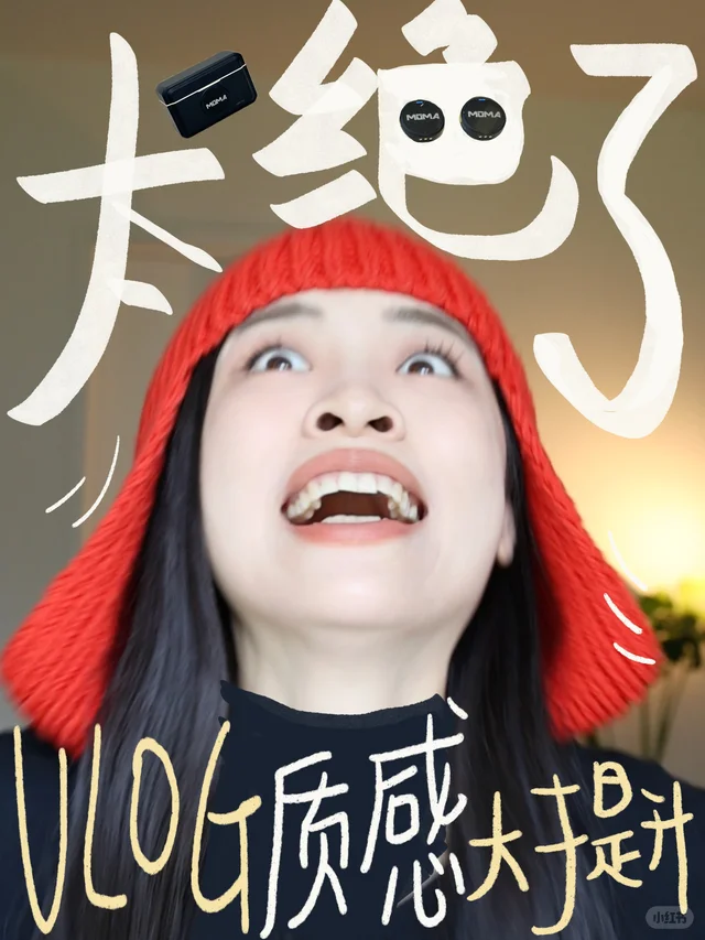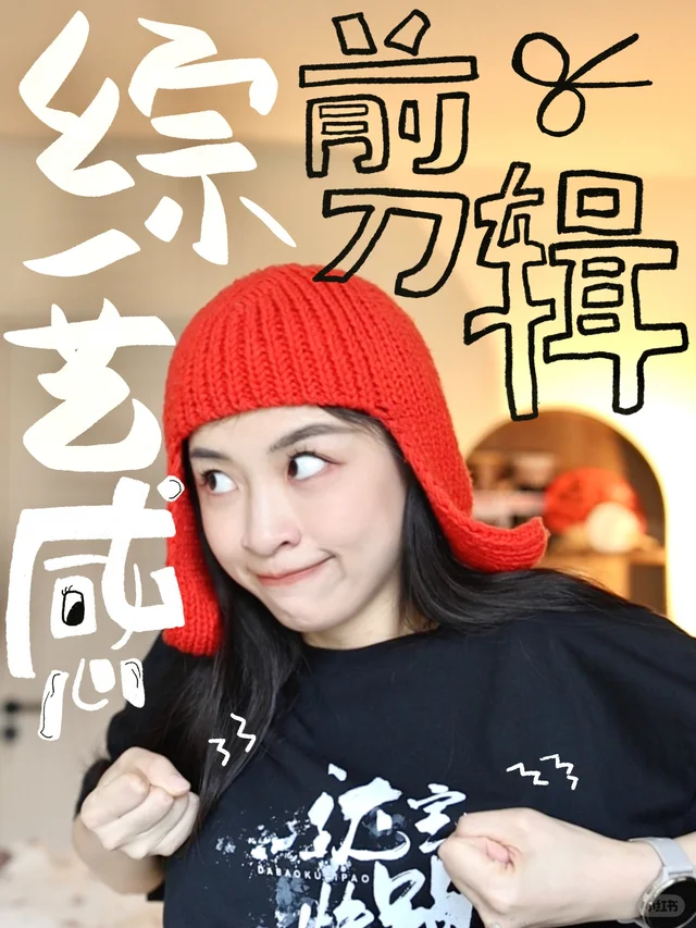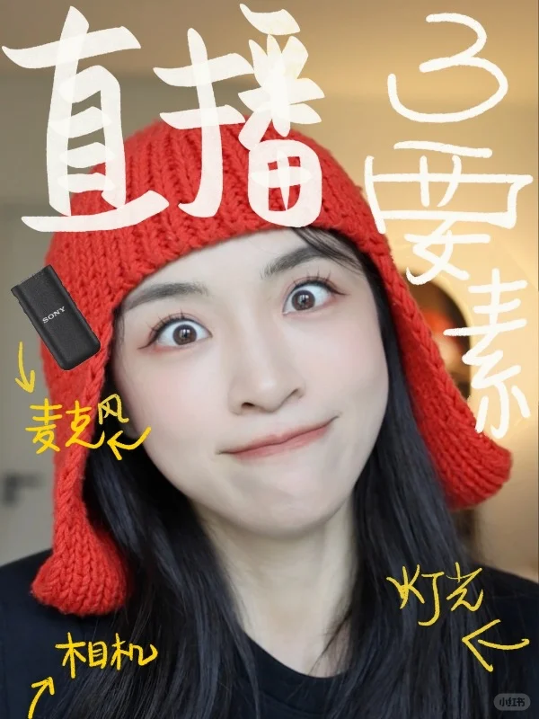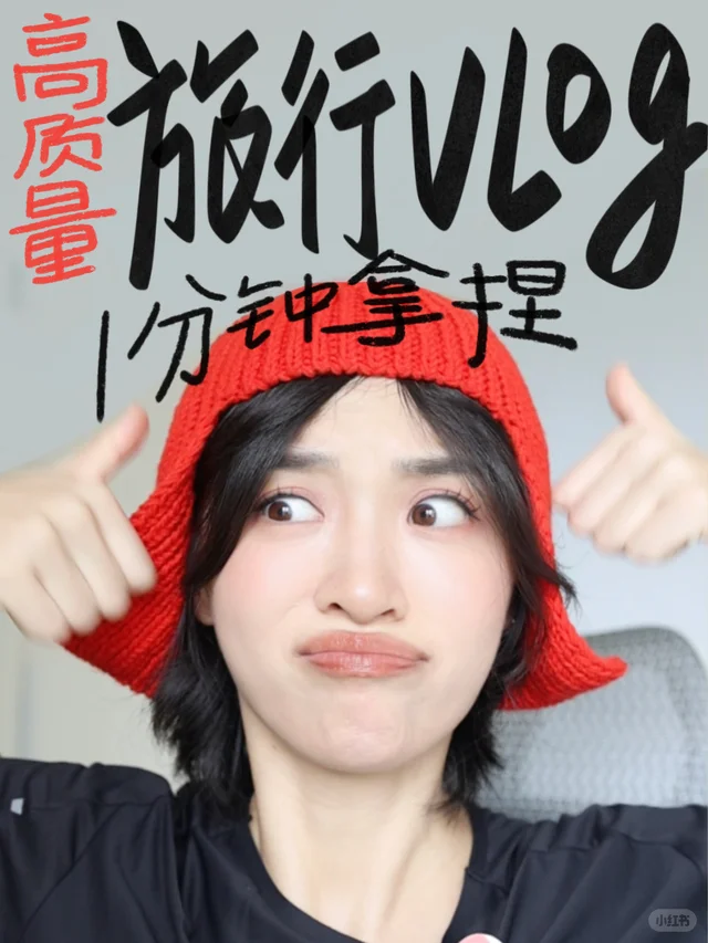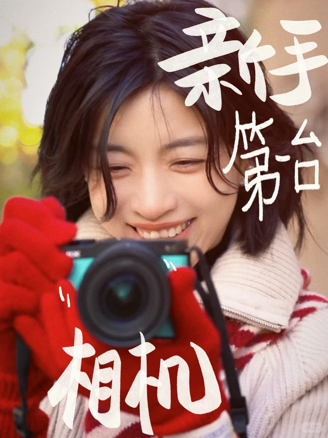 封面'新手第一台相机'大字+手持相机的真实场景,红色毛线帽在户外场景中依然保持人设辨识度;系统标题补充'轻便直出'卖点。封面=人群定位,标题=产品卖点。 |