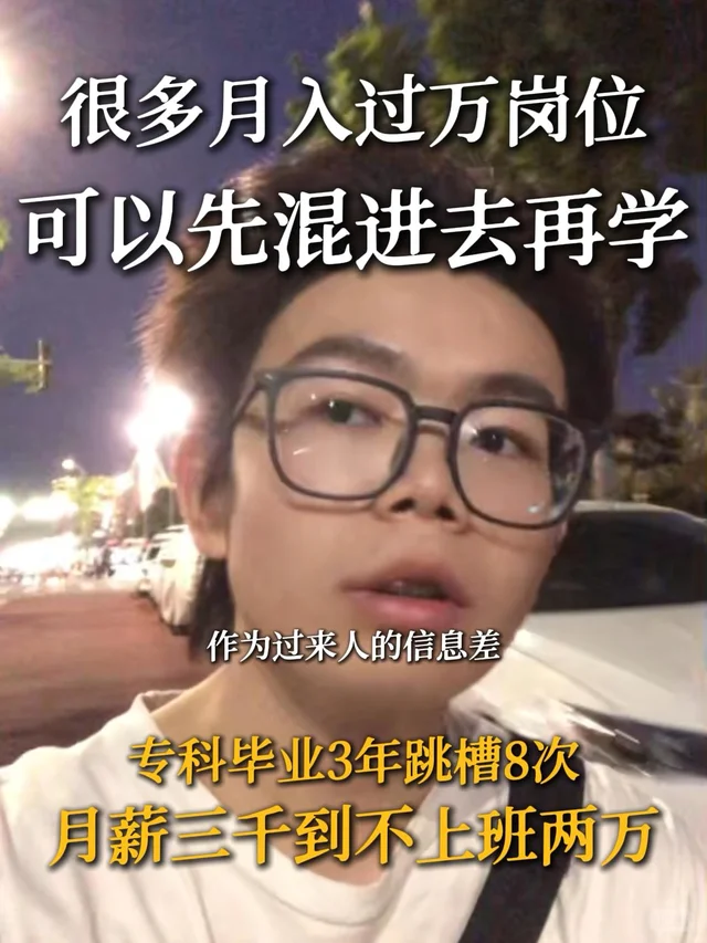 很多月入过万岗位 可以先混进去再学 作为过来人的忠告 专科毕业3年跳槽8次 月薪三千到不上班两万 |
