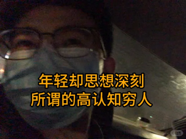 封面用造词(高认知穷人)做标签化概括,系统标题用劝告句式做情绪钩子。夜间自拍+口罩的低成本视觉风格强化'真实感'和'普通人'人设 |