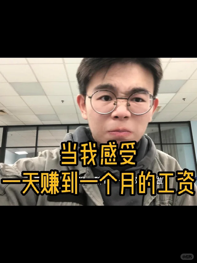 '一天=一个月工资'的时间压缩制造极强冲击力,表情做得略带苦涩/不可思议增强真实感 |